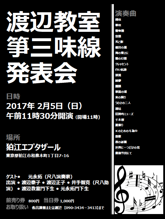 主催 NPO法人邦楽指導者ネットワーク21狛江支部